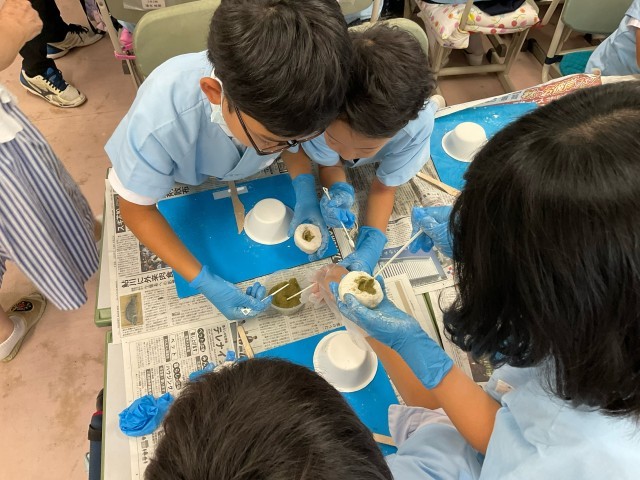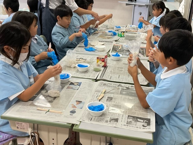 本日は,石けん教室を行っている先生をお招きし,こねこね石けんづくりに挑戦しました。今まで試してきた作り方とは異なる方法を楽しみながら,色・形・香りなどを工夫しながら石けんをつくることができました。今日の体験を,今後の学習に生かしてくれることを期待しています。