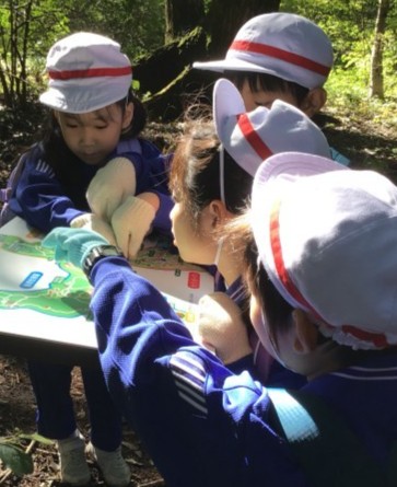 みんなで声を掛け合い,地図を見ながら,チェックポイントを目指してがんばって歩きました。