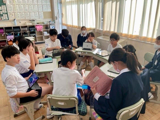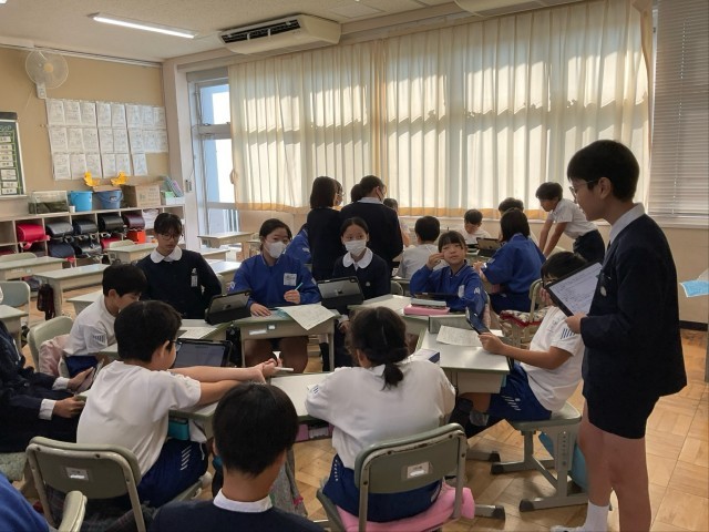1年生から6年生まで楽しめるレクにするためのルールづくりや下級生との接し方などを,6年生が5年生に伝えていきます。