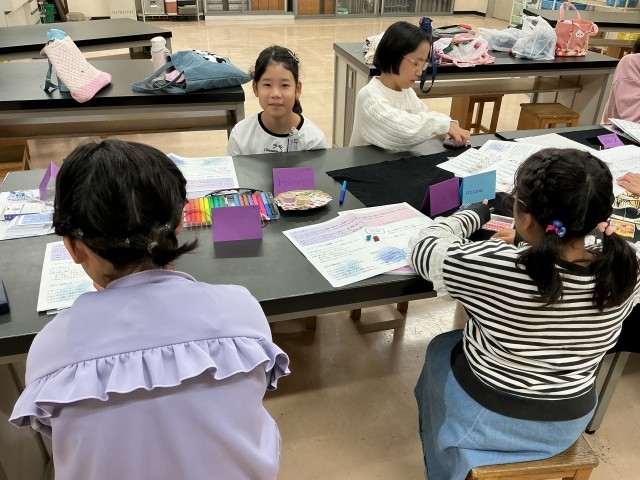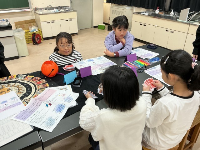 トランプを使った占いでは,占いの仕方を講師の先生に教わり,子どもたちがお互いに占いをしていました。