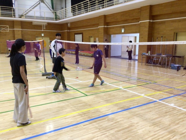 ダブルスのルールや動き方を教えてもらいながら,試合ができました。だんだんとラリーが続くようになり,楽しく取り組むことができました。