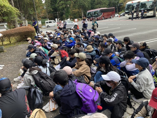 箱根オリ出発式です。お昼休憩をする甘酒茶屋まで歩いていきます。