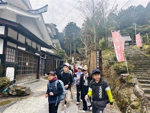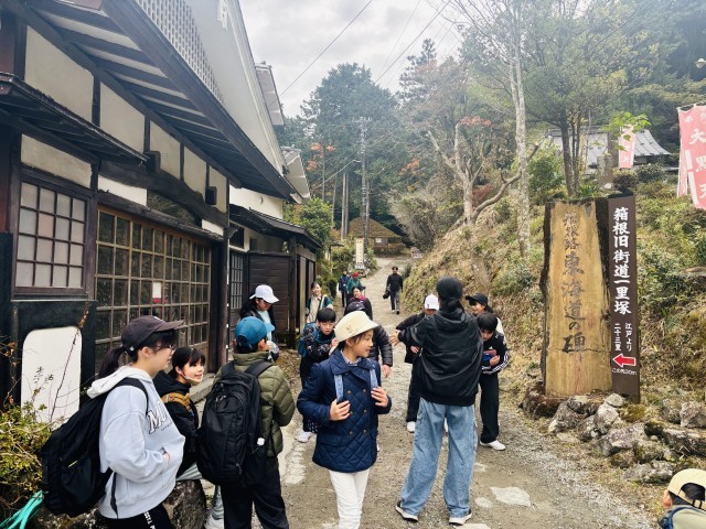 畑宿一里塚にゴールしました!石畳に苔が生えているので,滑らないように慎重に歩きました。
