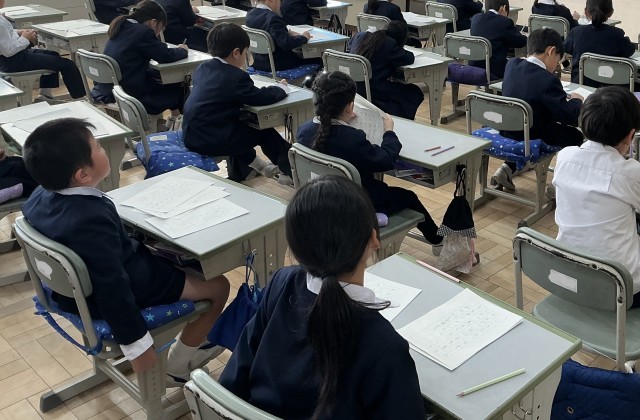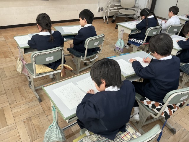 初めての書き初め大会で,緊張したり書き間違ったりすることもありましたが,どの子も一生懸命書く姿があり素晴らしかったです。