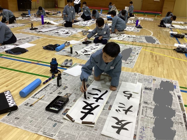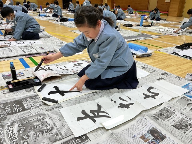 毛筆での,初めての書き初め大会を行いました。授業や冬休みに練習したことを生かし,一画一画,丁寧に筆を運ぶ様子が見られました。