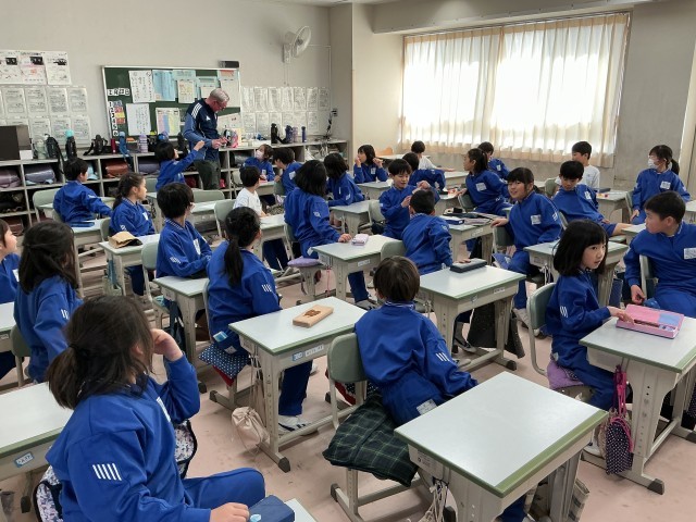 English Timeがありました。今日は,文房具と色の言い方の確認や「Do you have〜?」を使って問いかけたり答えたりしました。声を出したり,自分の文房具を持ったりしながら,楽しく活動ができました。