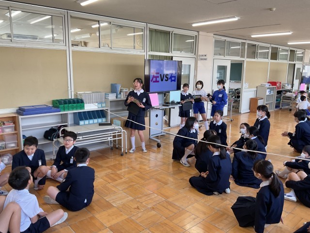 1学期最初の学年朝会を行いました。6名の学年朝会係の児童から、1学期の抱負についてや、6年生としての行動を「つぼみ」のみんなで意識していこうという話がありました。また、全員で2択クイズも行い、大変盛り上がりました。児童の自主的な活動を、今後もサポートしていきたいと思います。
