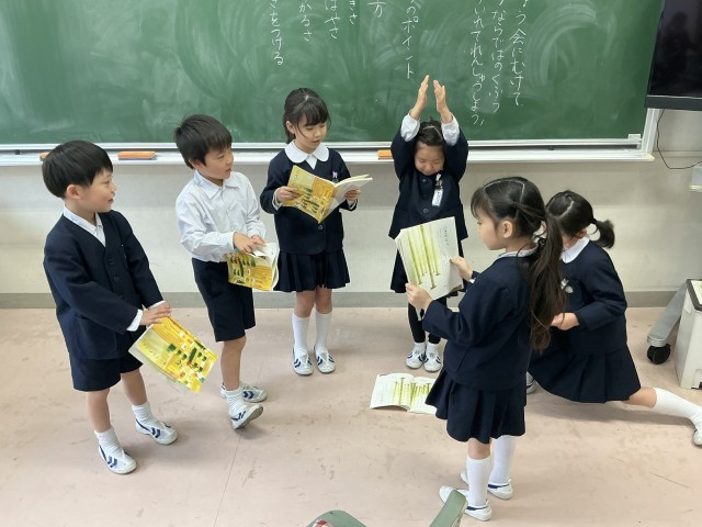 国語では,「ふきのとう」の学習をしています。竹藪の様子を思い浮かべたり,登場人物の気持ちを考えたりしました。学習のまとめとして行う音読劇に向けて,音読練習をしています。身振り手振りを加えたり,読み方の強弱を考えたりしています。それぞれ,班ごとに工夫しています。
