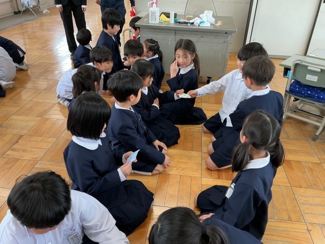 生活科「ようこそ,1年生」において,1年生と交流を行いました。昨年度育てていたアサガオからとれた種を渡すことの他に,遊びを考えて,楽しく交流をしました。遊びを考える際には,1年生の今の気持ちを考えながら,どんな遊びが楽しいかを出し合い,「じゃんけん列車」に決めました。1年経つと立派なお兄さん・お姉さんになるようです。1年生に積極的に声をかけて,活動ができました。