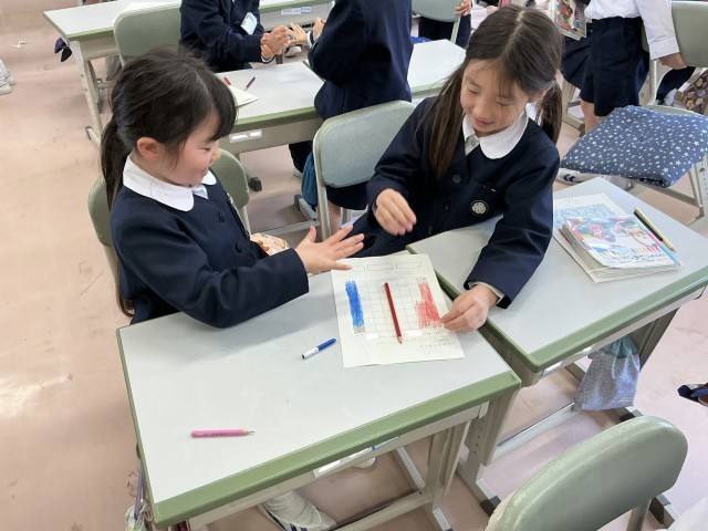 算数では,「2けたのたし算」を行なっています。その中で,筆算について学びました。少しずつ慣れてきています。今回は,じんとりゲームをしました。自分の得点の合計を筆算で求めました。
