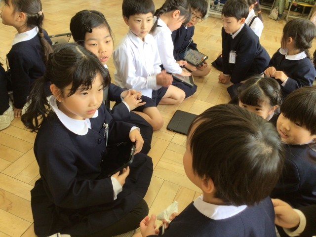 生活科「ようこそ,1年生」において,1年生と交流を行いました。昨年度育てていたアサガオからとれた種を渡すことの他に,遊びを考えて,楽しく交流をしました。遊びを考える際に,「1年生に学校を楽しいと思ってもらいたい」「やさしい2年生がいると安心できるから,やさしく接してあげたい」という思いをもち,2年3組では,遊びを「あてっこクイズ」にしました。お兄さん・お姉さんらしく,1年生の声を聞きながらクイズを出すことができました。