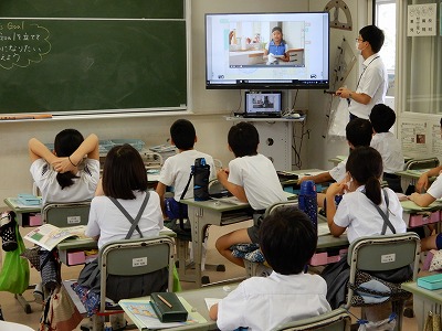 デジタル教科書の動画を見て,会話の内容を基に,この Unit のゴールを考えます。