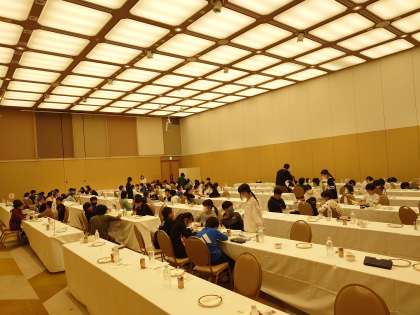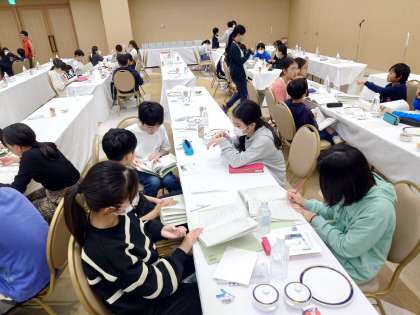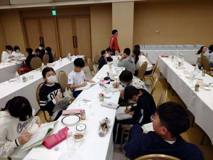 今日の振り返りと明日の打合せをします。昨日より元気な声が響いています。