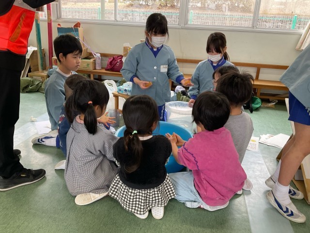 3年1組と2組「みらいプロジェクト」の学習では,固形石鹸のよさや魅力を発信しようと取り組んでいます。本日,近隣の保育園で,子どもたちが作った固形石鹸の体験会をしました。園児たちに向けて,固形石鹸の魅力...