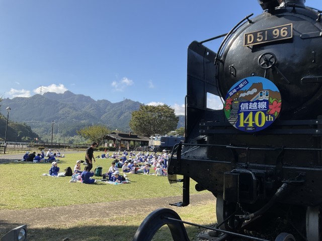 お弁当を美味しくいただきました!疲れた身体に,お弁当の栄養が染み渡りました。天気は秋の快晴で,気持ちが良かったです。写真でわかる通り,電車好きな子にとって最高の場所でした。